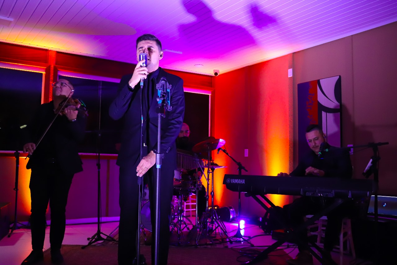 A banda Vintage Piano foi a responsável por embalar os casais com uma trilha sonora envolvente, criando o ambiente perfeito. O jantar, assinado pelo Restaurante Siso's, foi um espetáculo à parte, com um menu especialmente elaborado para a ocasião.