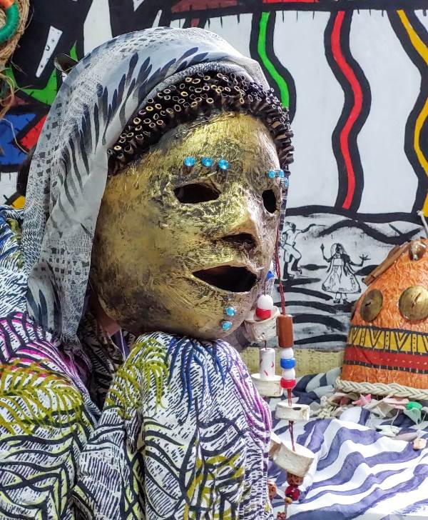 Arte afro-brasileira e máscaras de carnaval em exposição no Shopping Della