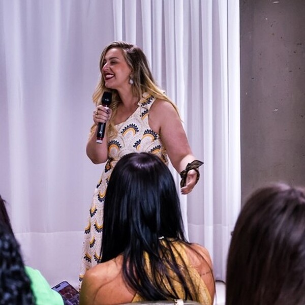 Além de Fabrícia Peron, subiram ao palco para compartilhar conhecimento: Natália Fernandes, de São Paulo (SP), especialista em vendas; Janaína Ornelas, mentora de finanças, de Brasília (DF); Isabel Lussana, mentora sistêmica e terapeuta, de Porto Alegre (RS); e Tiago Martins, palestrante e mentor de marketing, de Cocal do Sul.