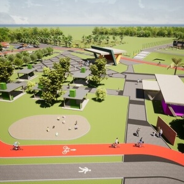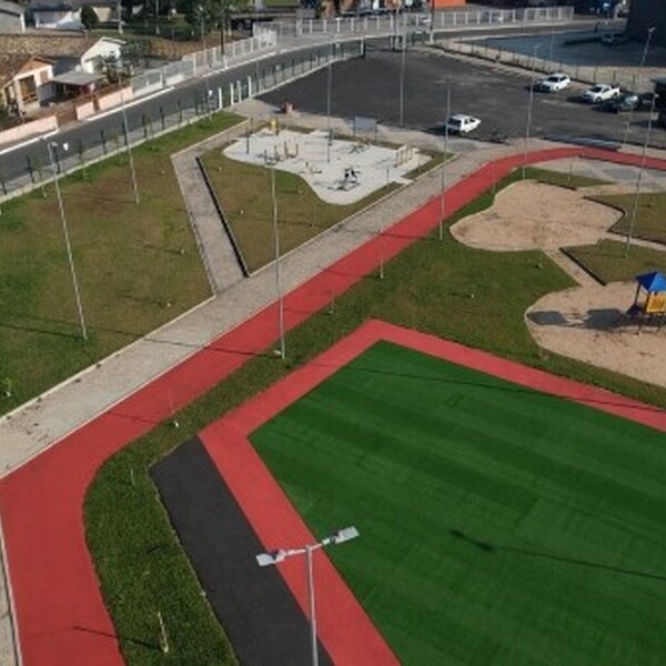 O espaço ainda conta com um chafariz com 15 ponteiras, parque infantil, palco para eventos, academia ao ar livre e amplo estacionamento.