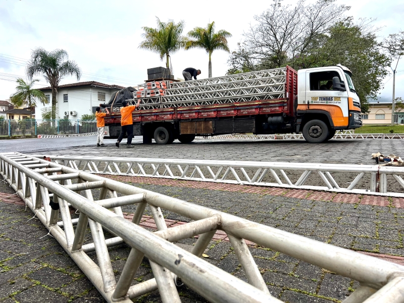 Siderópolis começou a receber nesta quinta-feira (24) a estrutura para abrigar a 24ª Festa do Colono. O evento, com entrada gratuita, acontecerá nos dias 8, 9 e 10 de agosto, no Centro da cidade.