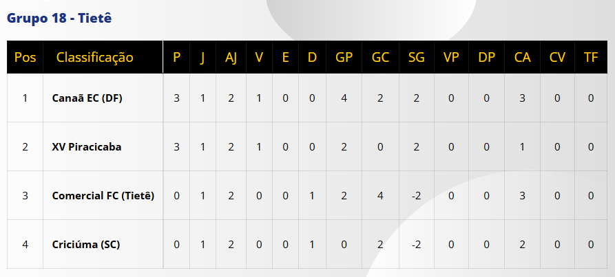A partida entre Canaã e Criciúma terá transmissão ao vivo pelo Canal do YouTube Paulistão. Para seguir vivo na Copinha, uma vitória é fundamental para o time comandado por Roberto Volpato. Confira a classificação do grupo abaixo.