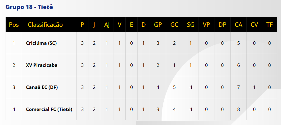 Os 4 times somam 3 pontos e somente os dois primeiros avançam à segunda fase da competição. Confira a classificação abaixo: