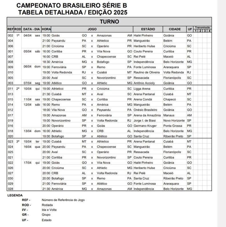 Confira abaixo os jogos do time carvoeiro e na imagem as três primeiras rodadas da Série B.