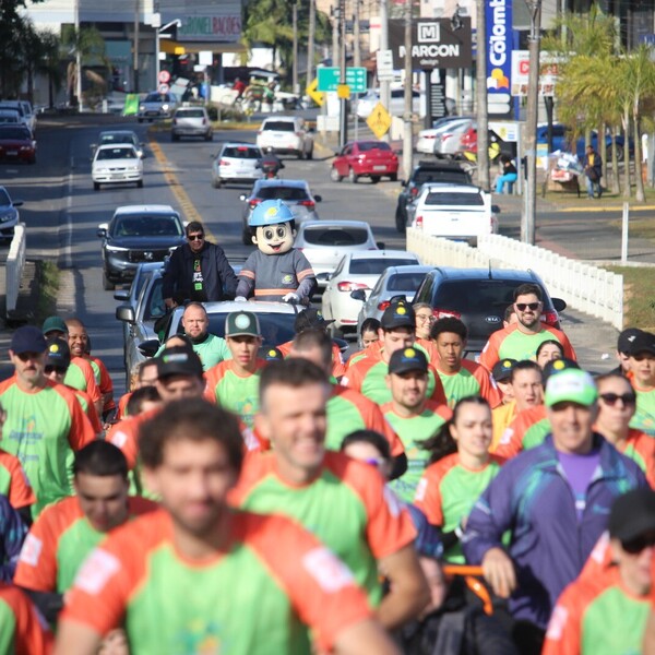 A solidariedade também teve espaço importante no evento. Os participantes do Passeio Ciclístico doaram alimentos não perecíveis, que serão repassados ao Lions Clube para ajudar famílias em situação de vulnerabilidade. Já os inscritos no Pernas Solidárias levaram pacotes de bolacha, destinados à Apae.