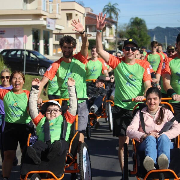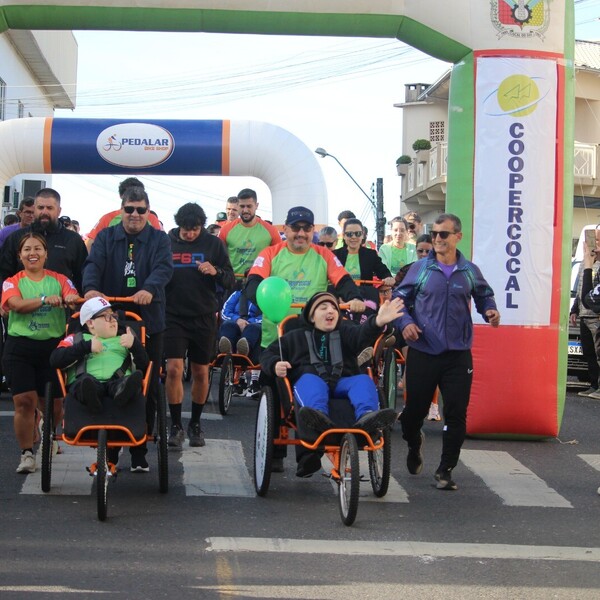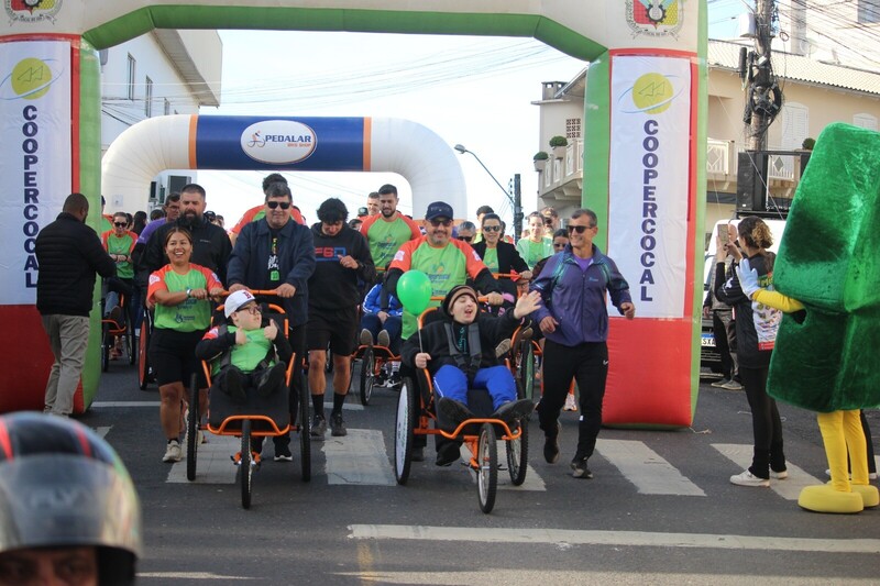 Uma das atrações que mais emocionou os presentes foi o 4ª Treinão Pernas Solidárias, que reuniu 160 voluntários e corredores. Vinte alunos da Apae de Cocal do Sul participaram da experiência de uma corrida de rua, percorrendo cerca de 5 km em triciclos adaptados, conduzidos pelos voluntários. A jovem Ana Júlia Mariot participou pela primeira vez e descreveu sua emoção.