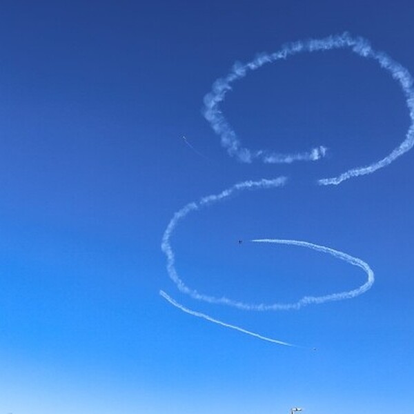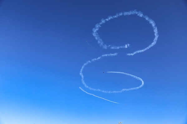 O momento mais marcante veio ao final da apresentação, quando os aviões desenharam um grande coração e o número “100” no céu, em homenagem ao centenário da cidade.