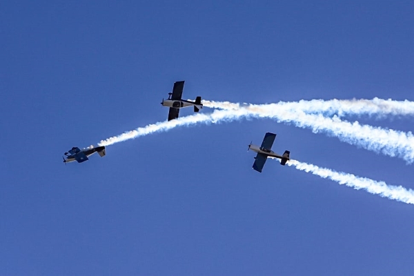 As manobras, com nomes curiosos e simbólicos — Ponte JK, Cobrinha, Looping com Troca de Formatura no Topo, Catedral, Tesourinha, Coração Flechado e Recalada — demonstraram a precisão e o domínio técnico do trio.