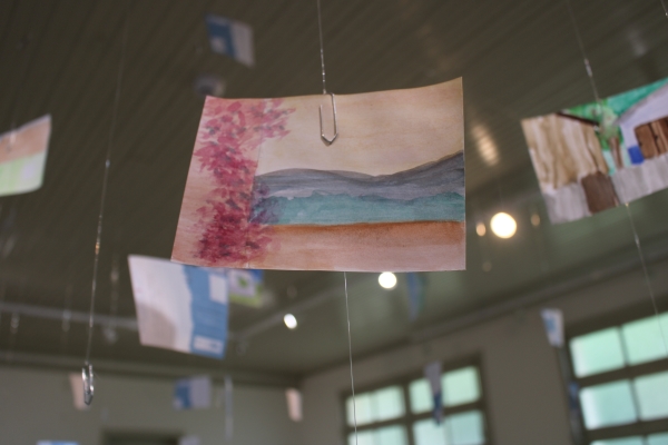 Ao todo, a exposição conta com 13 trabalhos em aquarela e uma instalação. Esta última foi construída a partir de cartões-postais criados por participantes das oficinas com a artista em 2024. A instalação é interativa e os visitantes podem aproveitar os materiais disponibilizados para elaborar e desenhar sua própria versão do “melhor lugar para estar”.