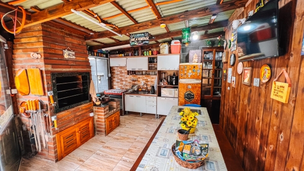 Cozinha completa compartilhada (fogão, churrasqueira e fogão a lenha)