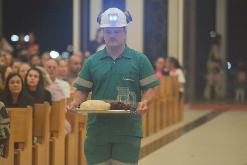 Os mineiros e profissionais do Setor Carbonífero foram homenageados com uma Missa na Basílica Santuário Sagrado Coração Misericordioso de Jesus, em Içara. A Solene Celebração Eucarística, realizada na noite dessa sexta-feira (25), atraiu centenas de participantes e integrou as atividades da 8ª Festa da Misericórdia.