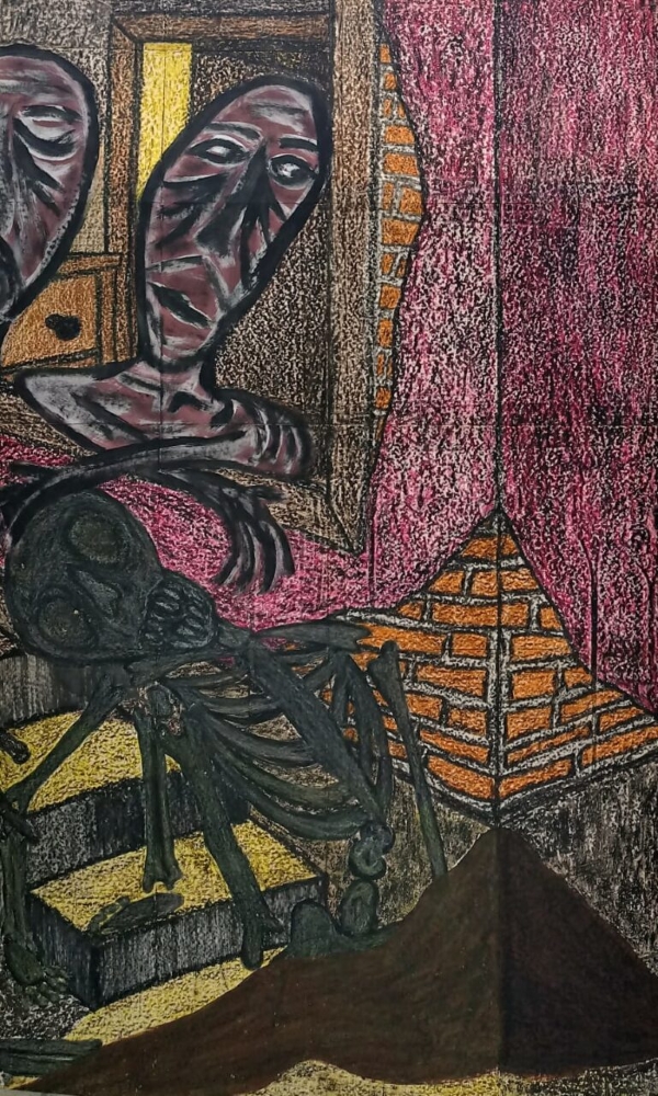 Alvaro Piuco, é de Criciúma, e desenvolve sua produção em técnicas mistas que articulam desenho, pintura e colagem. Iniciou sua prática artística em 2018 e constrói uma linguagem marcada pela fragmentação, repetição e incorporação do erro como procedimento estruturante.