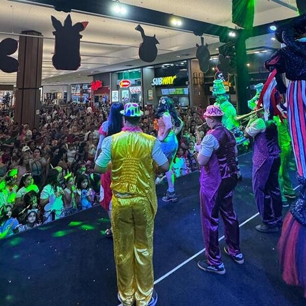 O Nações Shopping encerrou o Carnaval 2025 com o Bloco da Lilo e sua Turma na tarde dessa terça-feira (4). O evento começou com uma apresentação no palco da Praça de Alimentação e seguiu com uma Parada de Carnaval pelos corredores do shopping, envolvendo os visitantes em um clima de celebração.