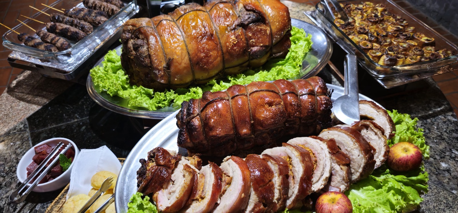 O destaque do cardápio é a irresistível porchetta, prato clássico da culinária italiana, preparado pela chef Patrícia Mazon. Feita com corte suíno temperado com ervas e especiarias, a carne é assada lentamente em forno a lenha — garantindo sabor marcante e crocância.