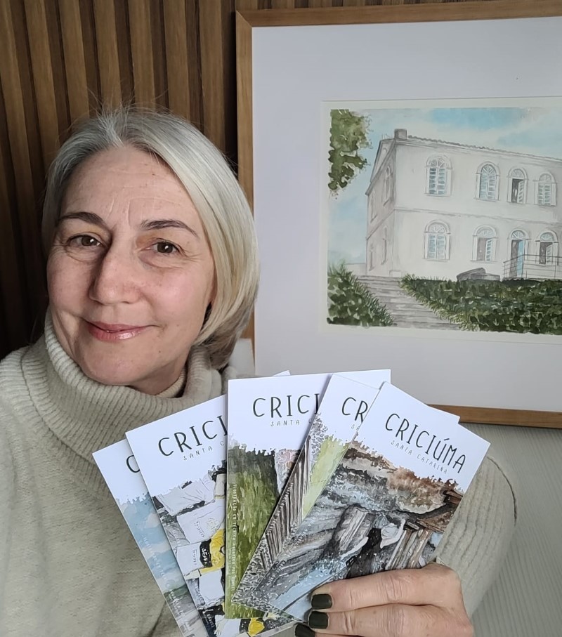 Em um mundo cada vez mais digital, a troca de mensagens escritas é um hábito que tem se perdido. Com o propósito de resgatar essa tradição e valorizar o afeto do manuscrito, a artista plástica Raquel Ávila lança o projeto “Descubra Criciúma com a Arte Aquarela”, que traz 12 postais ilustrados, transformando obras aquareladas em lembranças físicas de pontos turísticos municipais.