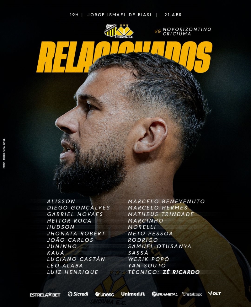 Confira abaixo os atletas carvoeiros relacionados para o jogo.