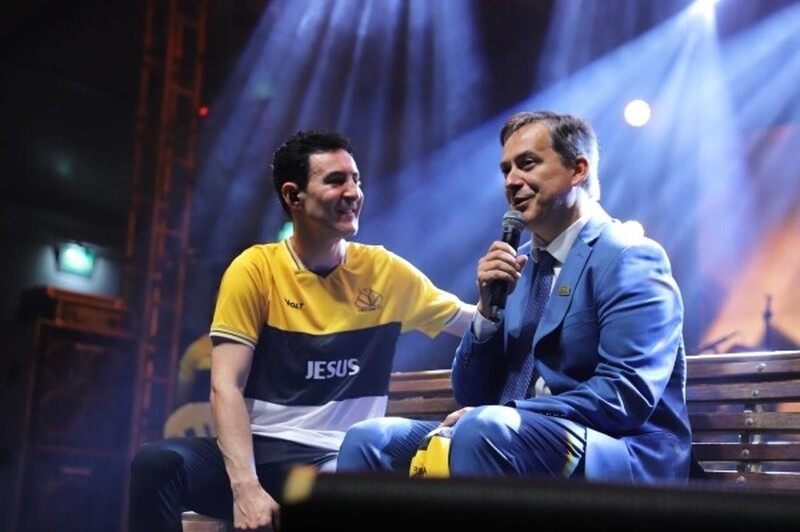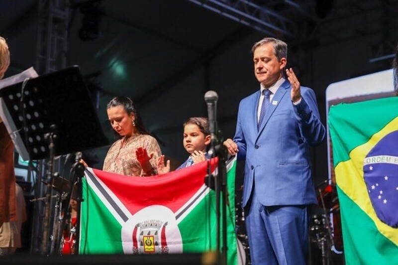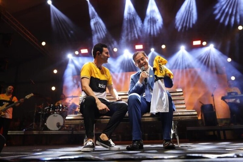 “Se o Senhor não guarda a cidade, em vão vigia o sentinela. Que Ele continue sendo o guarda de Criciúma, abençoando cada lar e cada família. Profetizo que os próximos 100 anos serão os melhores da nossa cidade”, disse o artista, emocionado.