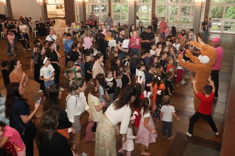 Uma programação especial movimentou a tarde deste sábado (19) na Sociedade Recreativa Mampituba. A tradicional "Caça aos Ovos de Páscoa" encantou mais de 130 crianças de até 12 anos, que participaram das atividades. Devido ao clima chuvoso, o evento foi realizado no Salão Social Abílio Paulo, na sede Campestre do clube.