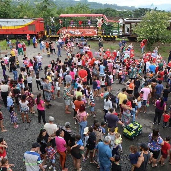 Nesta quinta-feira (12), a locomotiva natalina seguirá sua jornada, realizando mais 14 paradas de Tubarão a Imbituba e levando o espírito natalino a mais famílias.