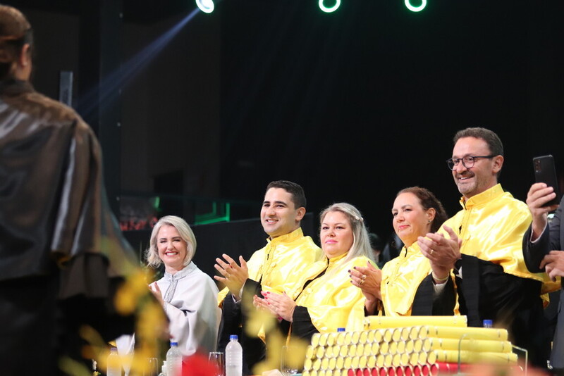 Na noite desse sábado (15), a Unesc realizou a sua primeira formatura de 2025. A cerimônia aconteceu no AM Master Hall, em Criciúma. No evento, 65 graduandos colaram grau nos cursos de: Artes Visuais, Educação Física, História, Letras, Pedagogia, e Tecnologia em Processos Gerenciais.
